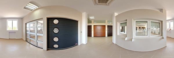 Tur virtual zonă de uși secționale rezidentiale și rulouri pentru ferestre aplicate Outbox, vedere din interior