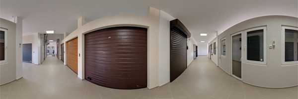 Tur virtual zonă de uși secționale industriale și rulouri pentru ferestre aplicate Unibox Plus, vedere din interior